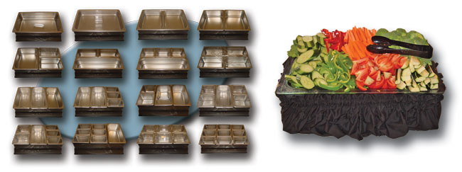 The best and most effective Buffet Chillers available today! Say goodbye to expensive and complicated equipment and exotic materials. Our Ice Chillers use nothing but ice and water to keep your food products Food Safe and at their best! You can